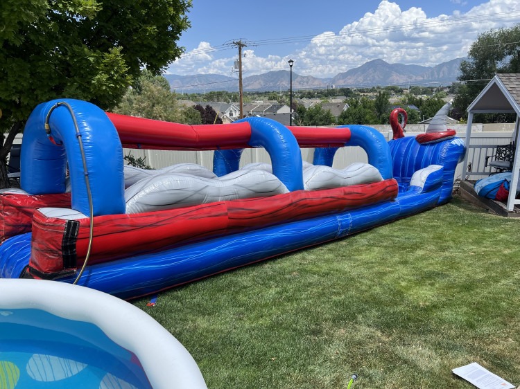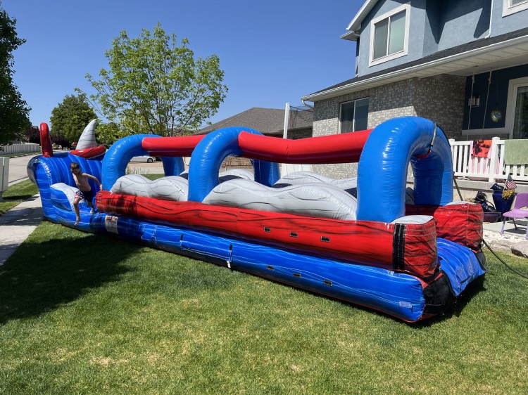 Enjoy this slip and slide with its nice off the ground design so you don't feel like you are diving or slamming on the ground. one of most popular units its a fun and inexpensive experience, it can be used on flat ground but definitely